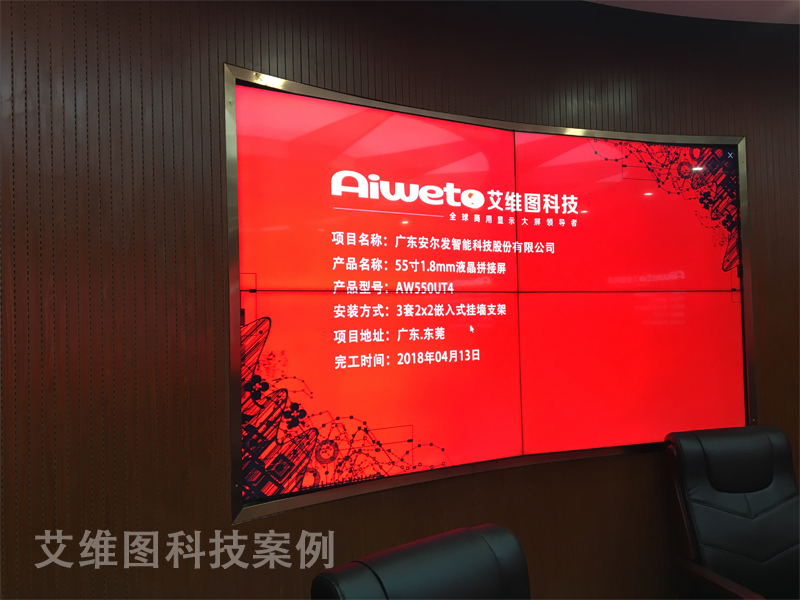 如今以數字化會議為主體的會議室中心,可進行信息交流、行政會議、視頻會議等多種功能的會議。通過集中智能控制系統,統一管理和操作,協調工作,可滿足會議的各種需要。廣東安爾發智能科技股份有限公司的會議室也要面臨著革新換代,為加快起到承上啟下的效率,采購了艾維圖科技的12臺55寸1.7mm液晶拼接屏產品。