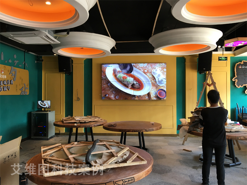 根據東莞萬江“鍋勺故事”餐廳的實際情況, 艾維圖科技技術工程師給出了55寸2x2掛墻式拼接屏顯示方案,艾維圖的高清液晶拼接屏穩定、性能可靠,滿足各方面要求,這款拼接屏擁有的IPS面板,可以讓色彩更飽和、畫質更細膩。而IPS技術所帶來的廣視角讓視線更開闊,多角度觀看無偏差,帶來驚艷的多方位的視覺體驗,無論是背景顯示還是餐廳的公共空間都能有清晰如一的視覺享受。