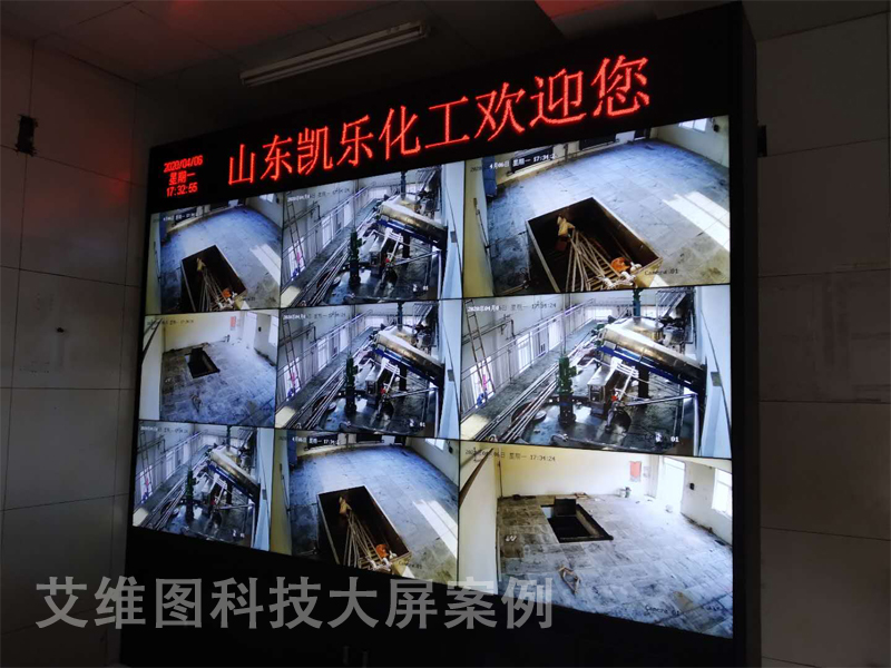 本次高清液晶大屏幕拼接屏監(jiān)控系統(tǒng)建設(shè),共包含9臺(tái)49寸LG拼接屏、1臺(tái)海康威視解碼矩陣、9單元落地機(jī)柜電視墻、1套3人位操作臺(tái)、1套P3.75單色LED顯示屏,9套高清信號(hào)線材等從,分別用在山東省棗莊市凱樂(lè)化工有限公司高清視頻監(jiān)控室。