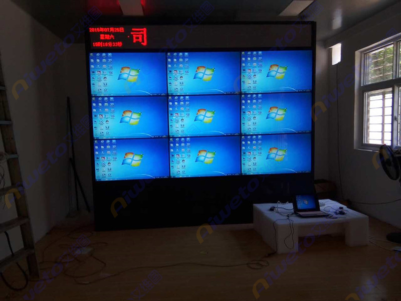 通過對客戶使用需求和部署環(huán)境的認真研究和考察,Aiweto(艾維圖)科技工程師給出了多套相關(guān)解決方案,最終選用了由9臺(Aiweto) 46寸液晶拼接單元組成的3×3大屏幕液晶拼接墻。(Aiweto) 46寸液晶拼接單元是艾維圖科技推出的一款超窄邊液晶拼接顯示器,采用工業(yè)級面板,采用先進的集成處理芯片,性能穩(wěn)定,運動圖像補償?shù)泉氂械南冗M技術(shù),有效的保證了輸出圖像的效果,支持7×24小時開機,拼接邊縫小,適合大屏液晶拼接項目應(yīng)用。