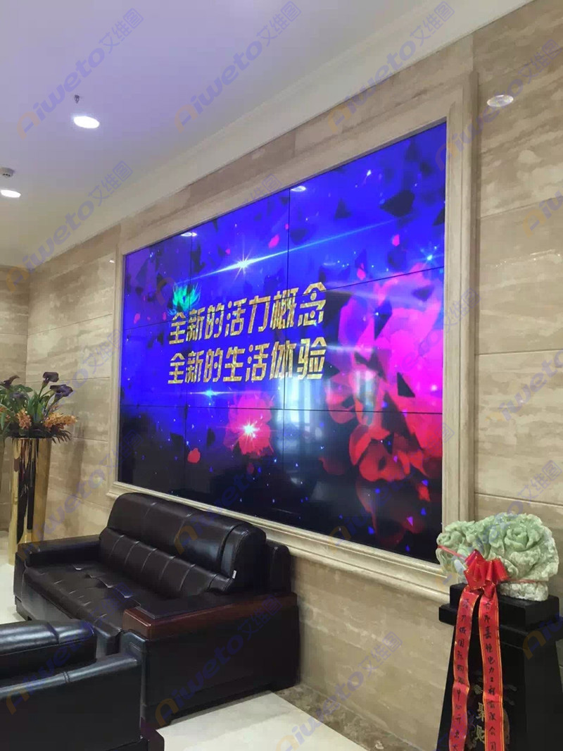 通過對客戶使用需求和部署環境的認真研究和考察,Aiweto(艾維圖)科技工程師給出了多套相關解決方案,最終選用了由9臺(Aiweto) 55寸3.5mm液晶拼接單元組成的3×3大屏幕液晶拼接墻。(Aiweto) 55寸3.5mm液晶拼接單元是艾維圖科技推出的一款超窄邊液晶拼接顯示器,采用工業級面板,采用先進的集成處理芯片,性能穩定,運動圖像補償等獨有的先進技術,有效的保證了輸出圖像的效果,支持7×24小時開機,拼接邊縫小,適合大屏液晶拼接項目應用。