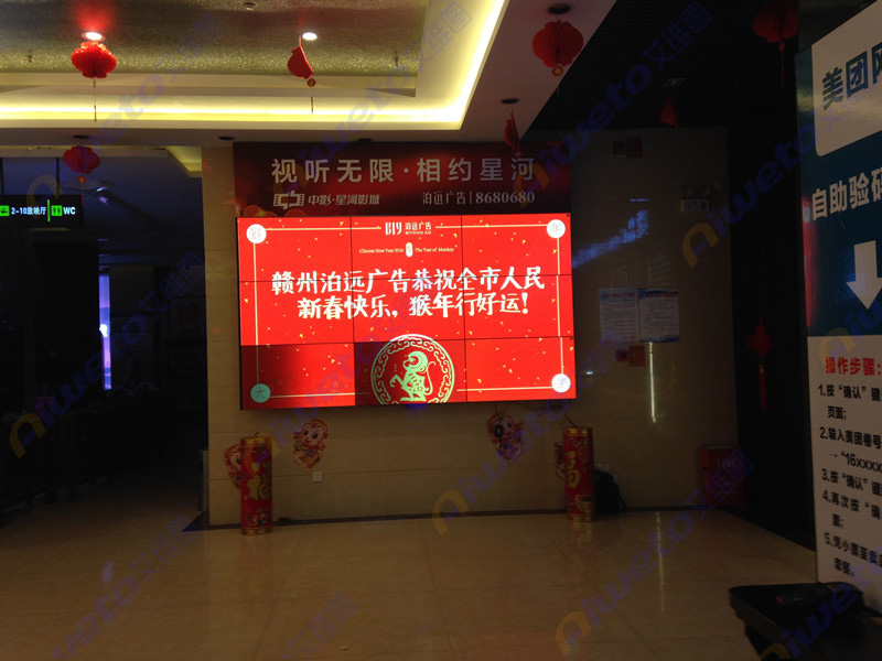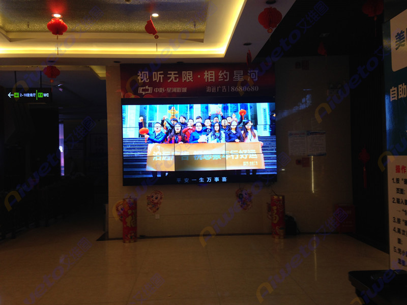 此次項目是為贛州星際國際影城大廳內安裝全高清、無線大屏幕液晶拼接系統,為其打造了一整套集傳媒、廣告于一體的現代化影城。