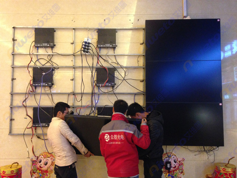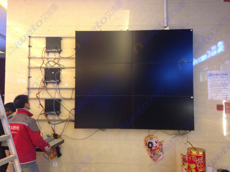 通過對客戶使用需求和部署環境的認真研究和考察,Aiweto(艾維圖)科技工程師給出了多套相關解決方案,最終選用了由9臺(Aiweto) 46寸液晶拼接單元組成的3×3大屏幕液晶拼接墻。(Aiweto) 46寸液晶拼接單元是艾維圖科技推出的一款超窄邊液晶拼接顯示器,采用工業級面板,采用先進的集成處理芯片,性能穩定,運動圖像補償等獨有的先進技術,有效的保證了輸出圖像的效果,支持7×24小時開機,拼接邊縫小,適合大屏液晶拼接項目應用。